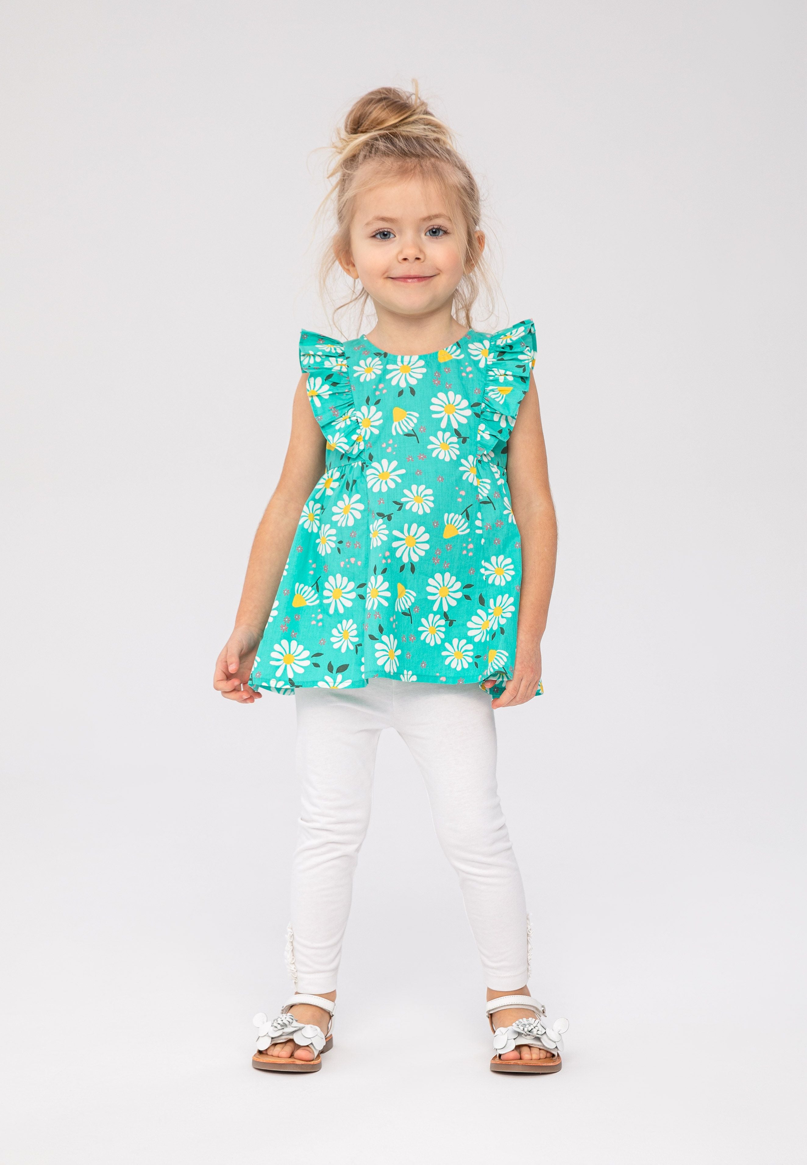 Tjejset med topp och leggings med volangärmar grön 3m-3y